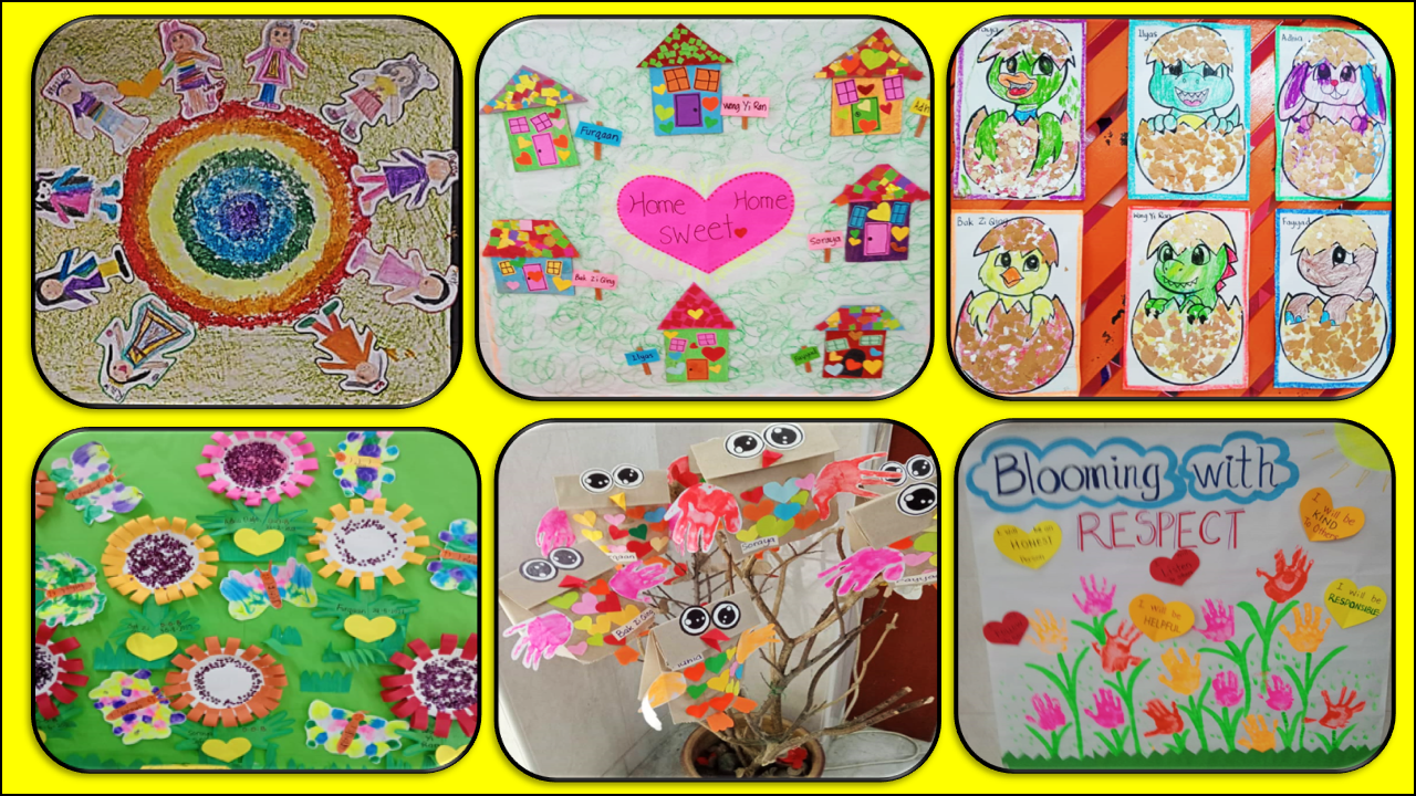 Creative art inspired by Reggio Emilia Approach [nurturing children's creativity]. are displayed in the classrooms,