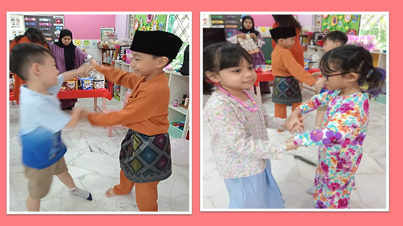 'Selamat Hari Raya Party' Children in their beautiful attires participate in the fun games. They shared delicious food with friends. After the party all went home happily with bags of goodies.