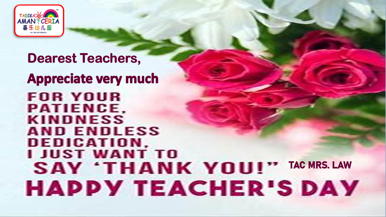 To our dearest parents "Thank you for your beautiful teacher's day gifts" Your continued support is truly appreciated