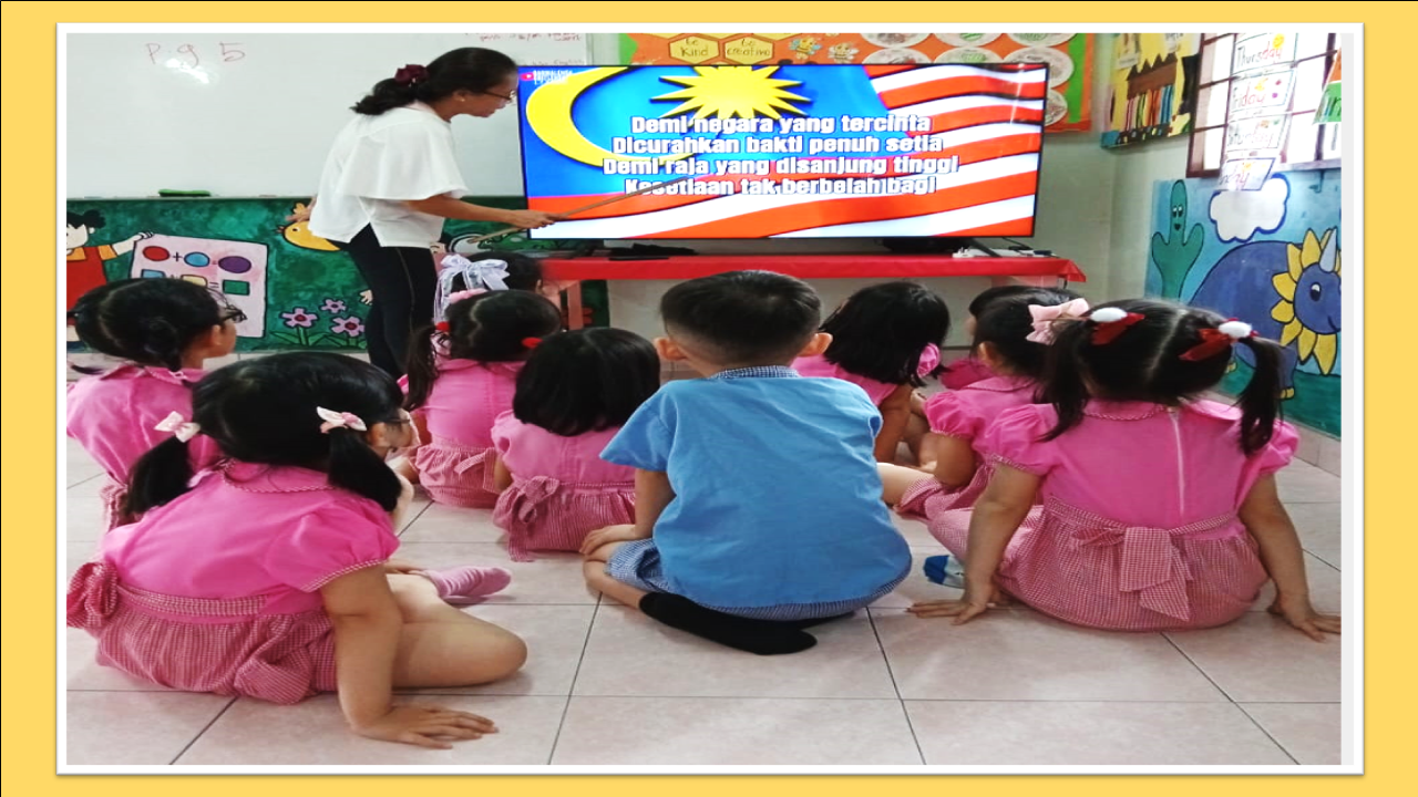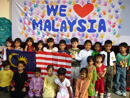 Children sing The Negara Ku and Demi Negara yang tercinta...'Patriotic songs inspire feelings of pride in one's country.