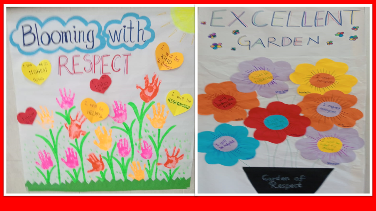 Children make classrooms more vibrant with 'Respect' creative mural. Their artworls are nicely illustrated with beautiful drawings, leaves and handprinting.