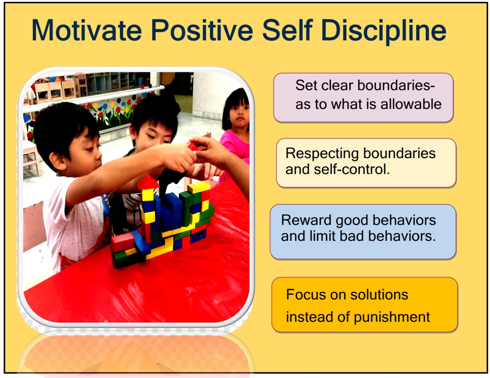 • Self discipline is powerful, helps children to learn constructively, happily, healthily and effectively.